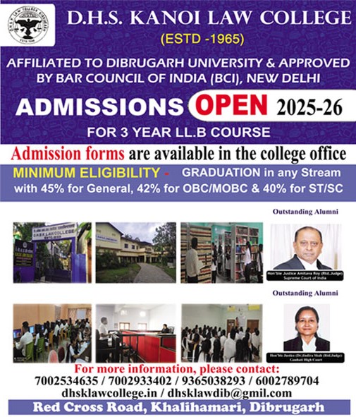 Lawyers, I assert are social engineers having power and ability to bring change in the society. Hard work is the key to success and hard work accompanied with patience bears the positive fruits of success. I invite you to embark upon your spirited journey in the picturesque green lust and serene environment of DHSK Law College and the Magical surrounding of Dibrugarh which is popularly known as the ‘Tea City of India’.